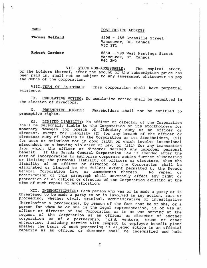 The registrant hereby amends this Registration Statement on such date or dates as may be necessary to delay its effective date until the registrant shall file a further amendment which specifically states that this Registration Statement shall thereafter become effective in accordance with Section 8(A) of the Securities Act or until the Registration Statement shall become effective on such date as the Commission, acting pursuant to said Section 8(A), may determine.