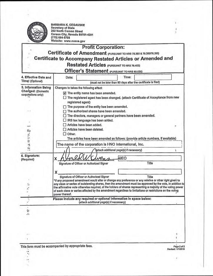 Our executive offices are located at 41558 Eastman Drive, Suite B, Murrieta, CA 92562, and our telephone number is (951) 305-8872. Our website address is www.hnointl.com. Information contained on our website does not form part of this prospectus and is intended for informational purposes only.