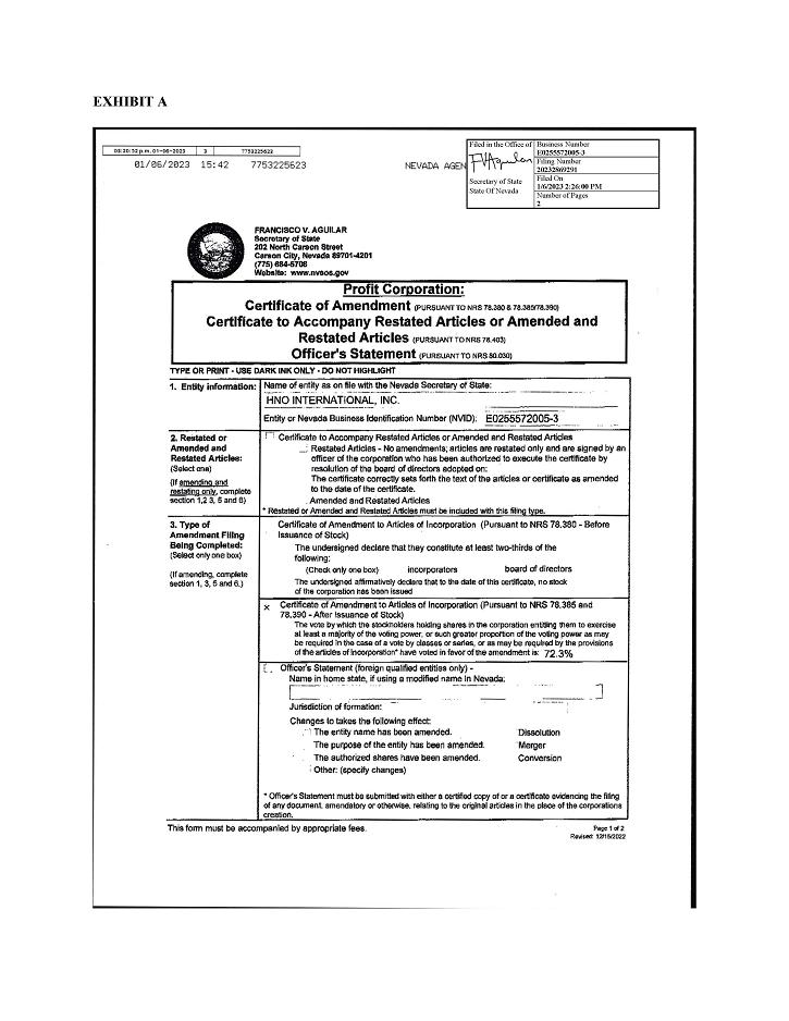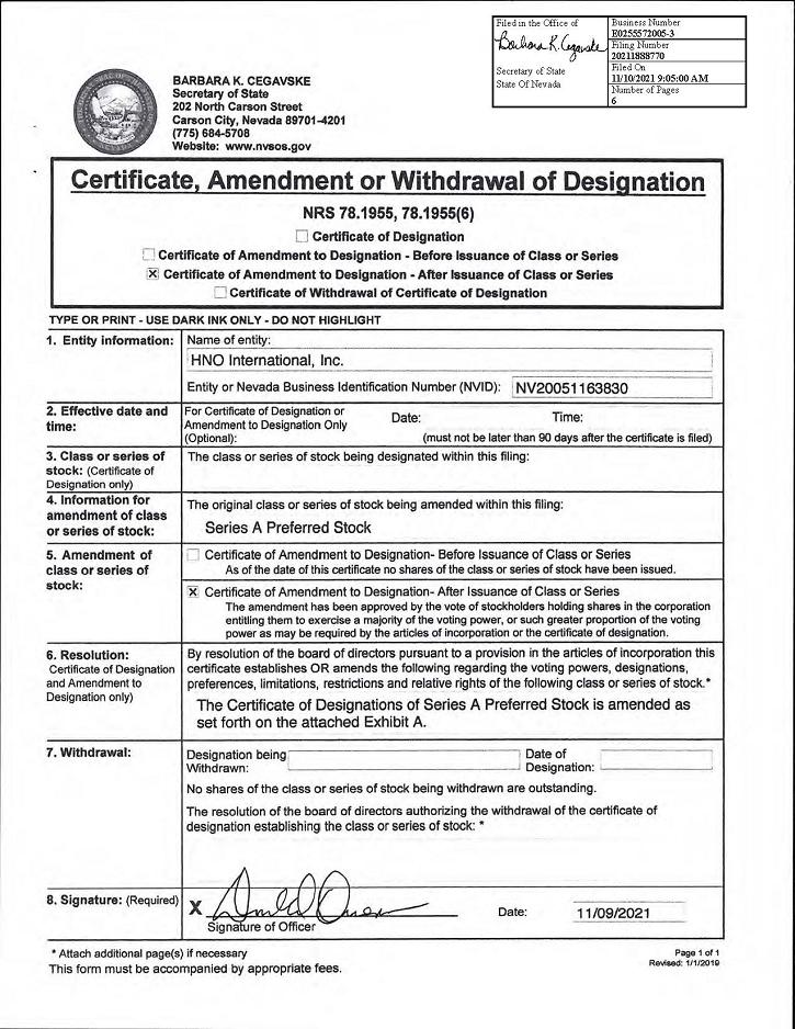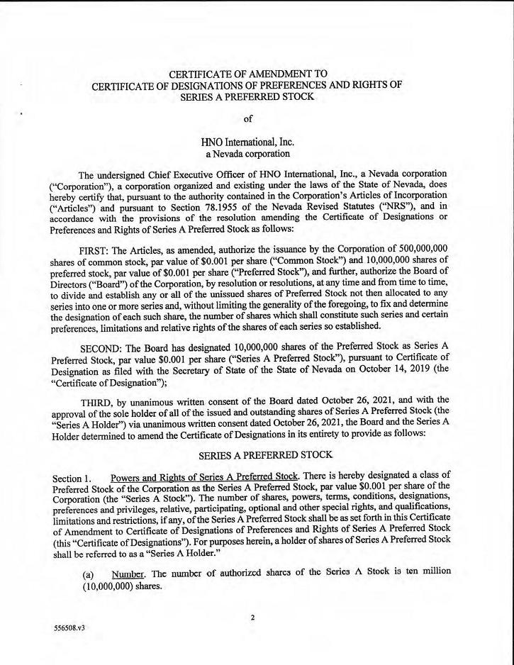 HNO International, Inc., a Nevada corporation (herein referred to as “we,” “us,” “our,” “HNO” and the “Company”), focuses on systems engineering design, integration, and product development to generate green hydrogen-based clean energy solutions to help businesses and communities decarbonize in the near term.