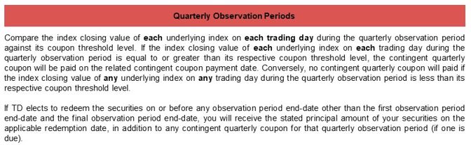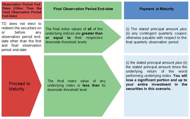 such observation period end-date. If TD elects to redeem the securities prior to maturity, the securities will be redeemed for an amount per security equal to the early redemption payment on the redemption date. No further payments will be