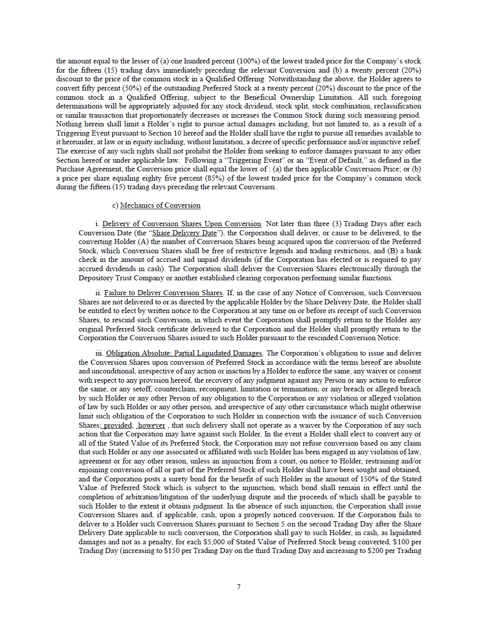 | Subsequent Event [Member] | Conversion of Common Stock to Series C Preferred Shares [Member] |