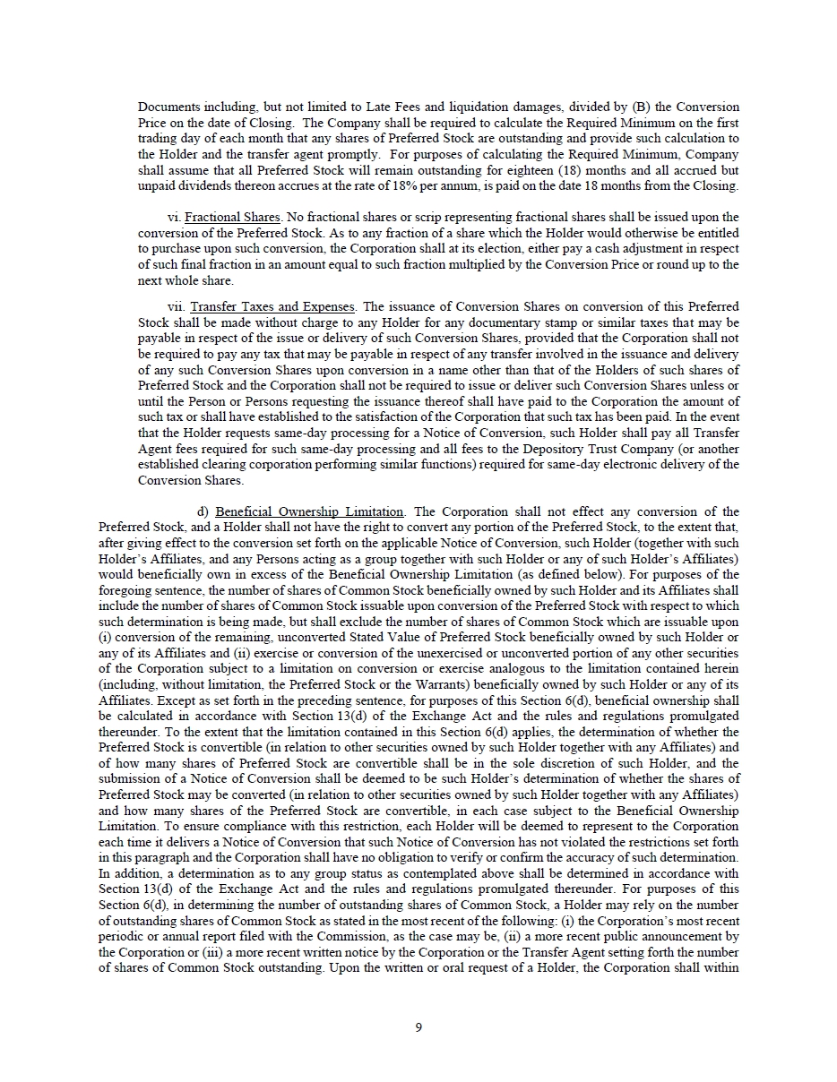 | Subsequent Event [Member] | Conversion of Common Stock to Series B Preferred Shares [Member] |