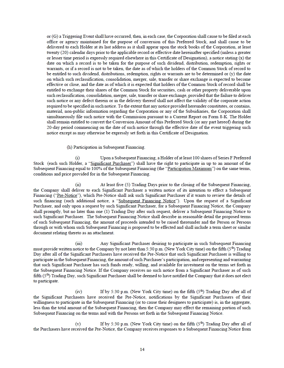 | Subsequent Event [Member] | Series F Preferred Shares [Member] |