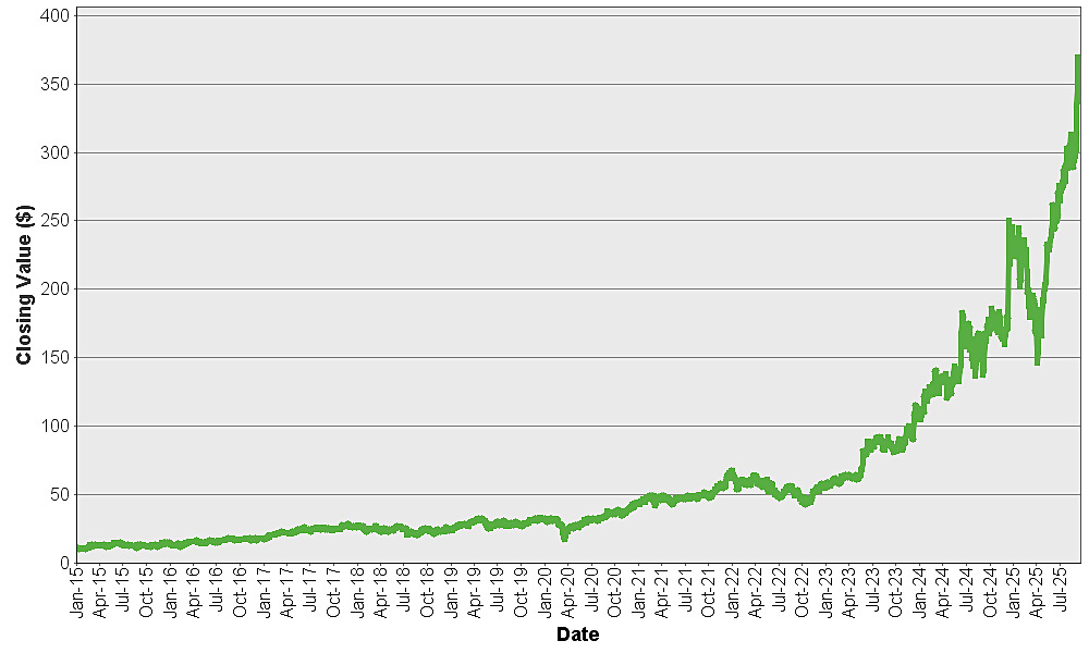 The graph below shows the closing value of Broadcom Inc. for each day such value was available from January 2, 2015 to September 19, 2025. We obtained the closing values from Bloomberg L.P., without independent verification. If certain corporate transactions occurred during the historical period shown below, including, but not limited to, spin-offs or mergers, then the closing values shown below for the period prior to the occurrence of any such transaction have been adjusted by Bloomberg L.P. as if any such transaction had occurred prior to the first day in the period shown below. You should not take historical closing values as an indication of future performance.