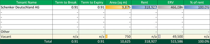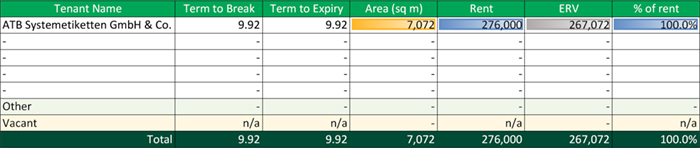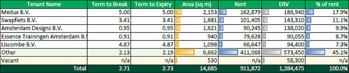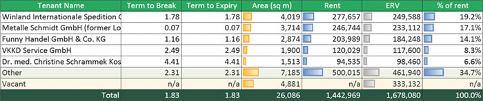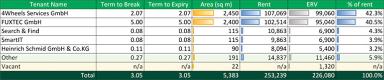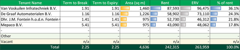 | Total Rental Value | 289,035 | Number of Tenants | 8 | ||||