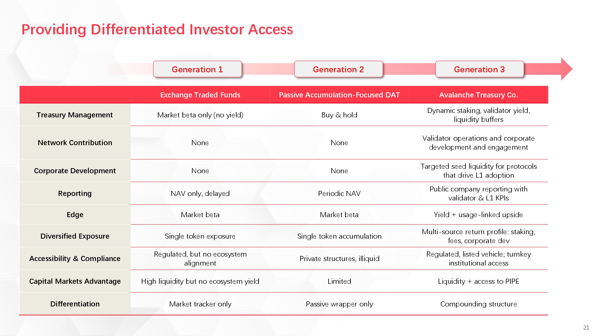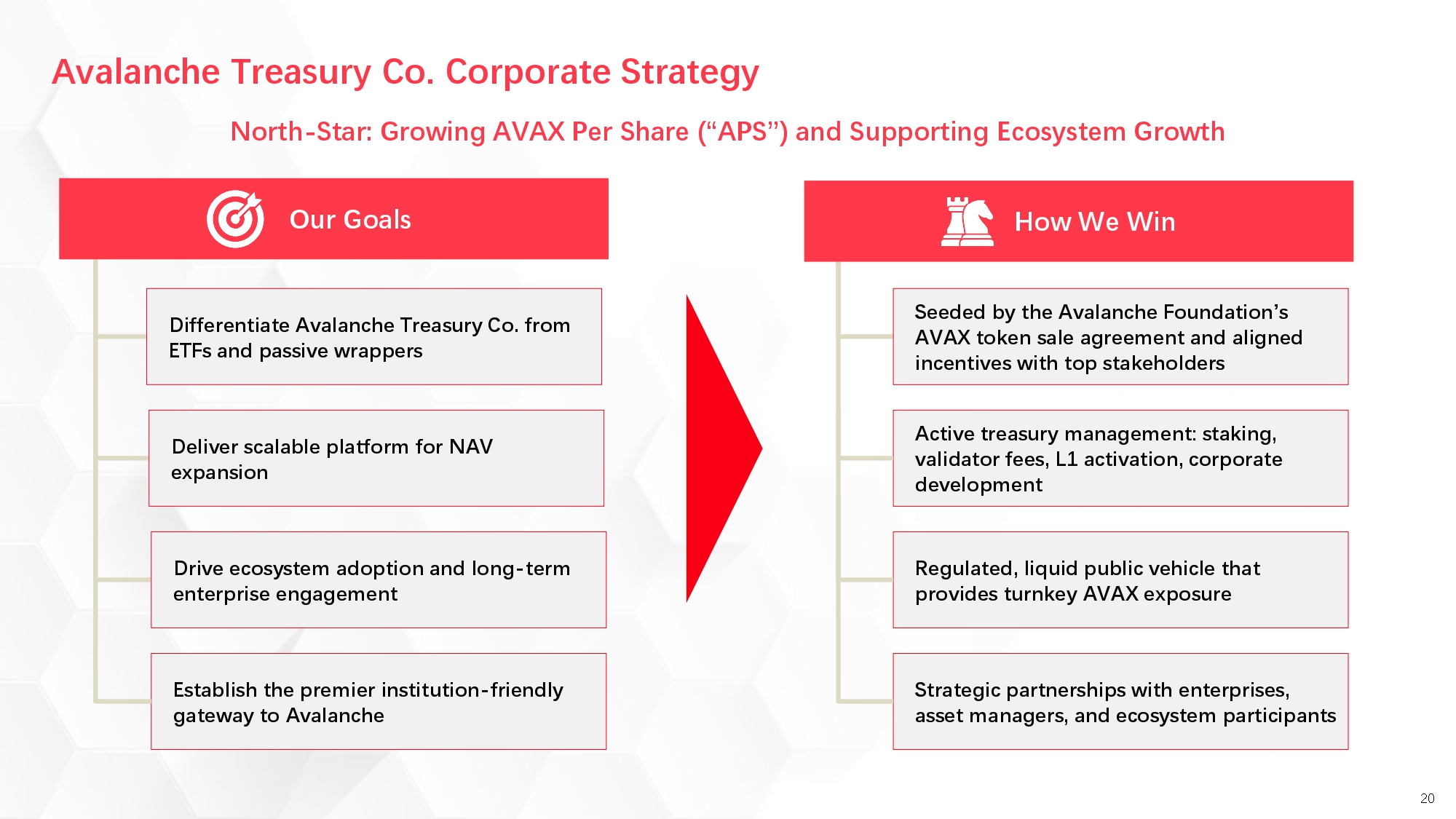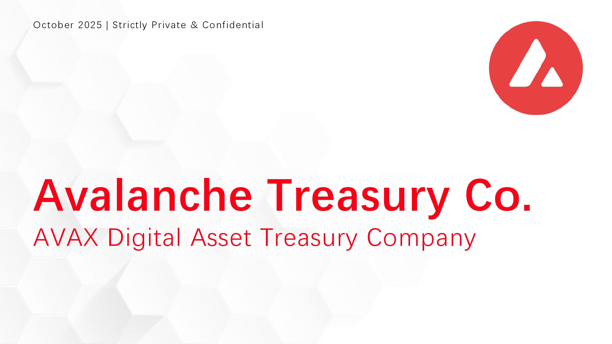 Avalanche Treasury Co. (“AVAT”) is an ecosystem-aligned vehicle providing exposure to the Avalanche ecosystem through active treasury management, strategic investments, and an exclusive relationship with the Avalanche Foundation. AVAT bridges traditional finance and blockchain through a purpose-built operating system designed for institutional adoption.