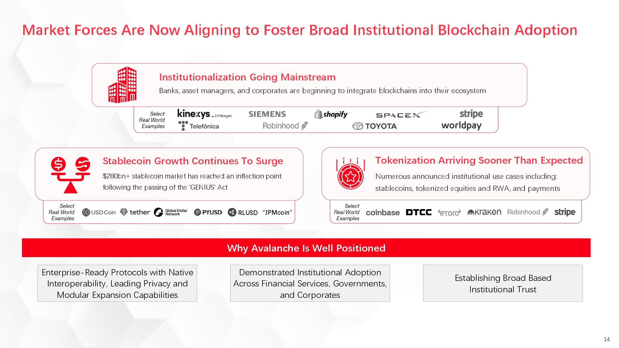 The transaction comes as anticipated regulatory clarity is expected to accelerate institutional adoption. Avalanche has emerged as an enterprise blockchain of choice, with major corporations, financial institutions, and government entities building production applications on its multi-L1 framework. The network's multi-L1 framework allows institutions to launch custom blockchains while maintaining interoperability with other blockchains on the Avalanche network.
