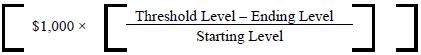 · if the Ending Level is less than the Threshold Level: $1,000 minus: