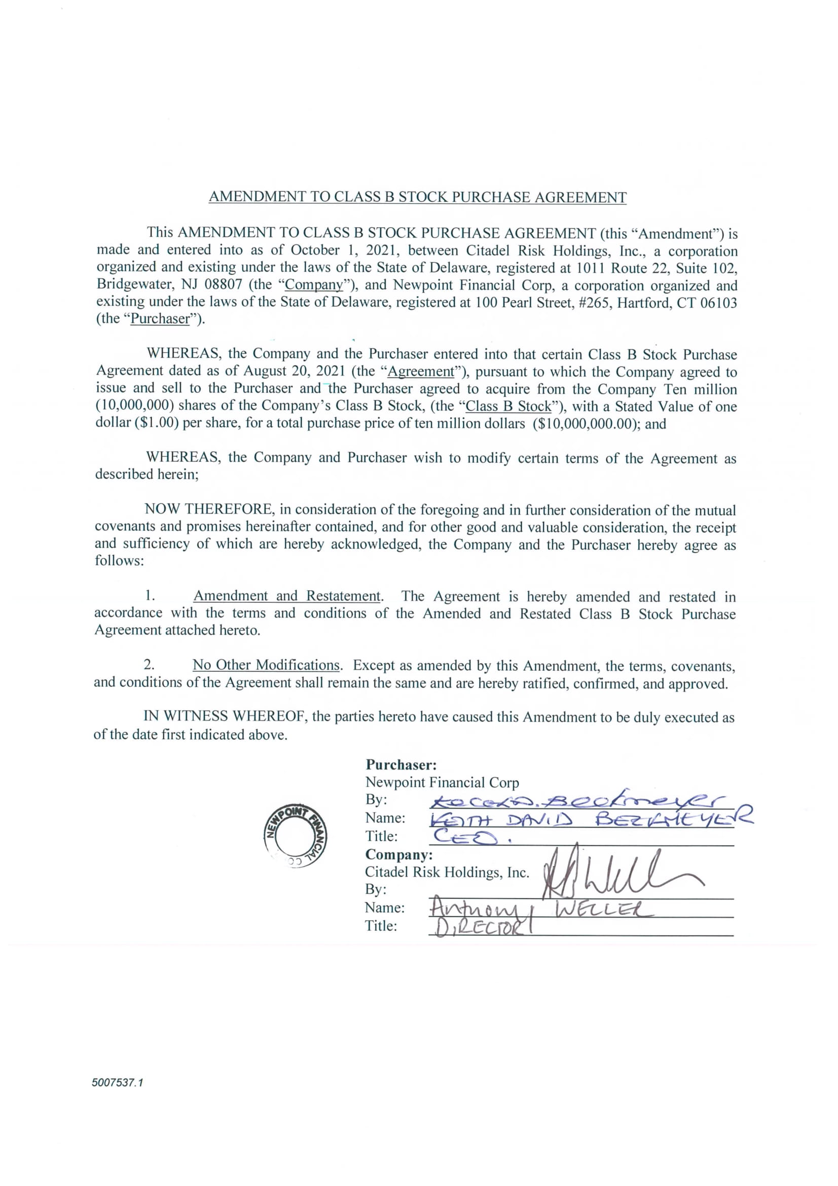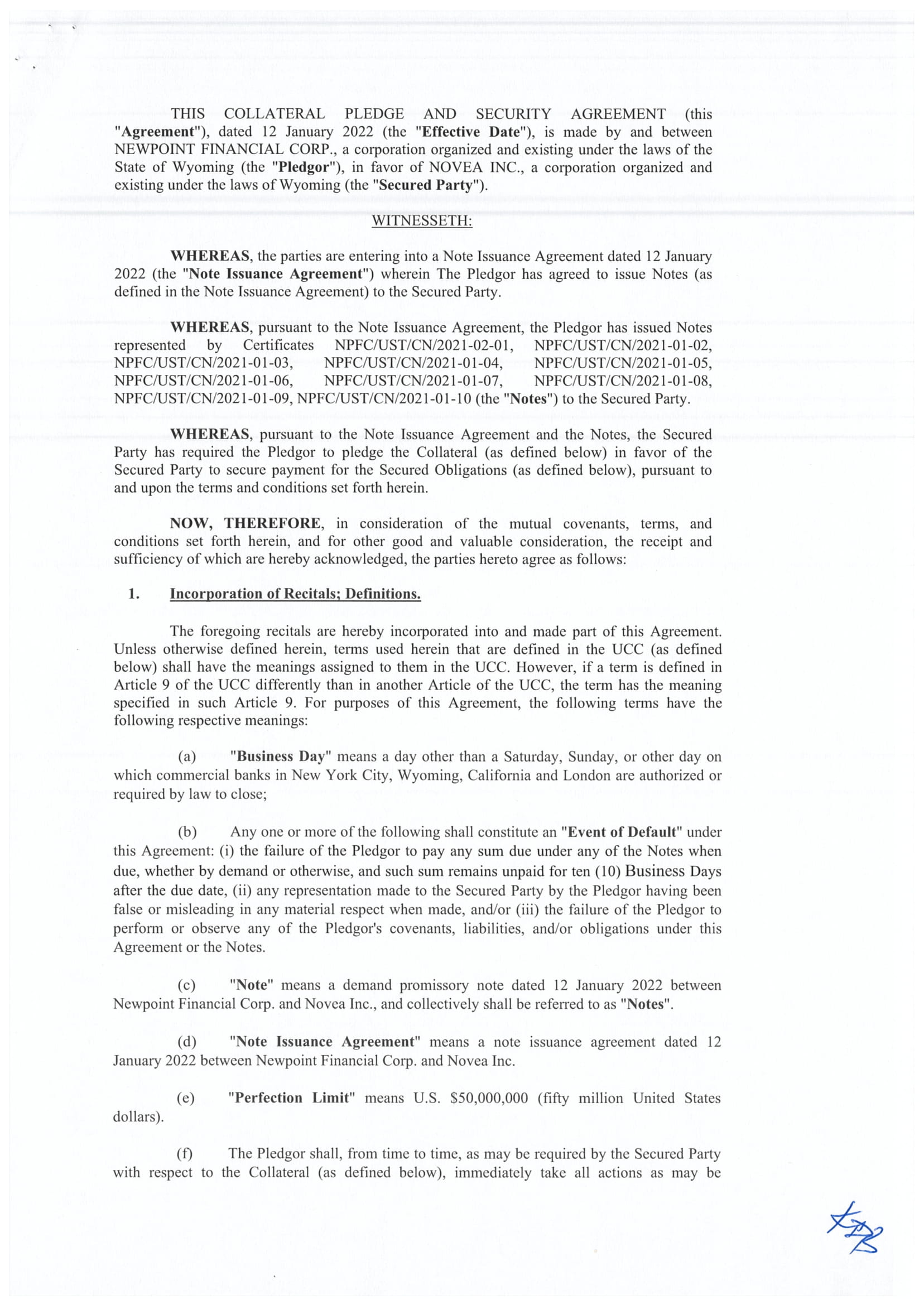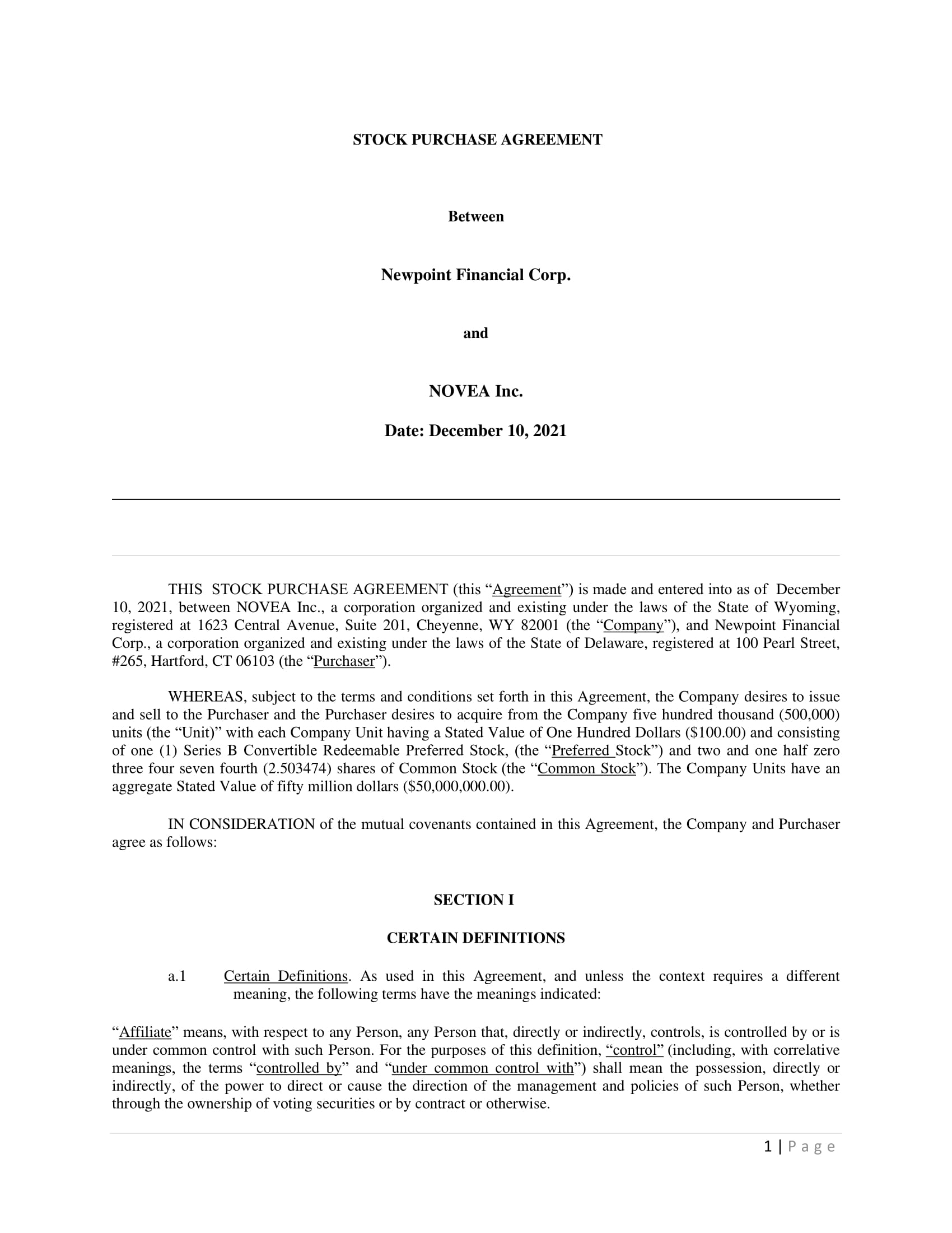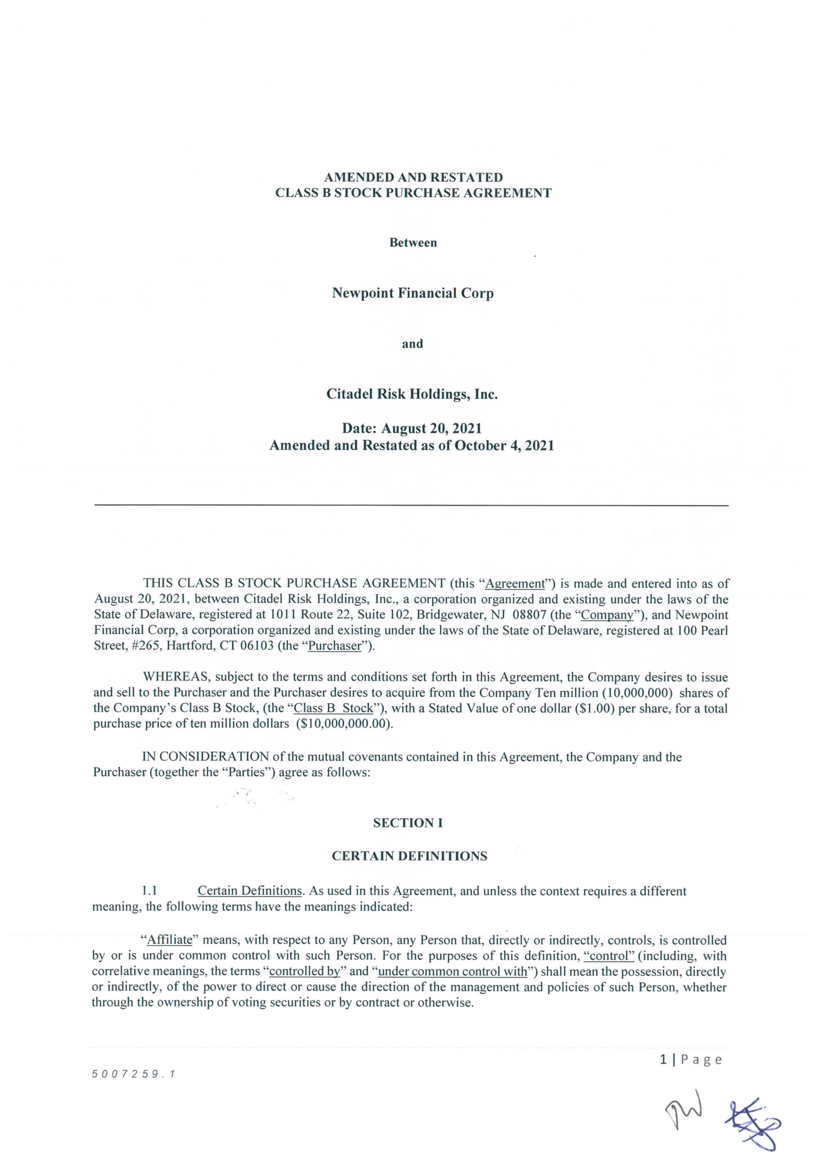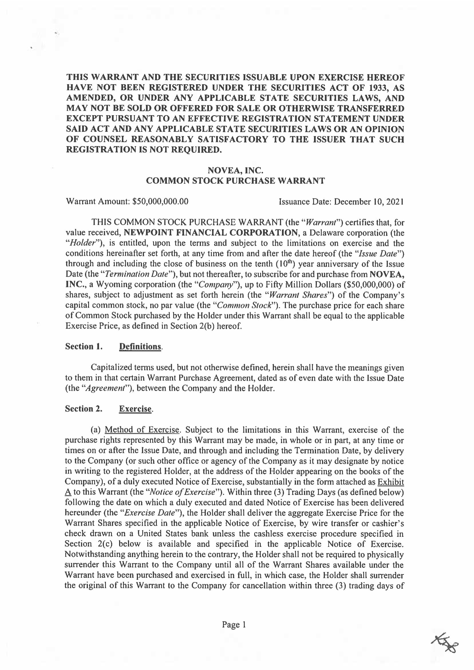 Newpoint Financial Corp., a Delaware corporation (the “Company,” “we,” “us,” or “our”) is a holding company that strategically invests primarily in regulated entities such as banks and insurance companies. These investments may be result in us acquiring a controlling or non-controlling interests of these entities. To date, we have entered into three such transactions (one of which has closed): in December 2021 we acquired a 10% interest in Novea, Inc., a financial and insurance services software company; we have also entered into an agreement for the acquisition of an interest in American Millennium Insurance Co., a New Jersey based insurance company (see Item 9b) through purchase of shares of its parent holding companies. Closing is subject to receipt of regulatory approvals and other customary closing conditions.