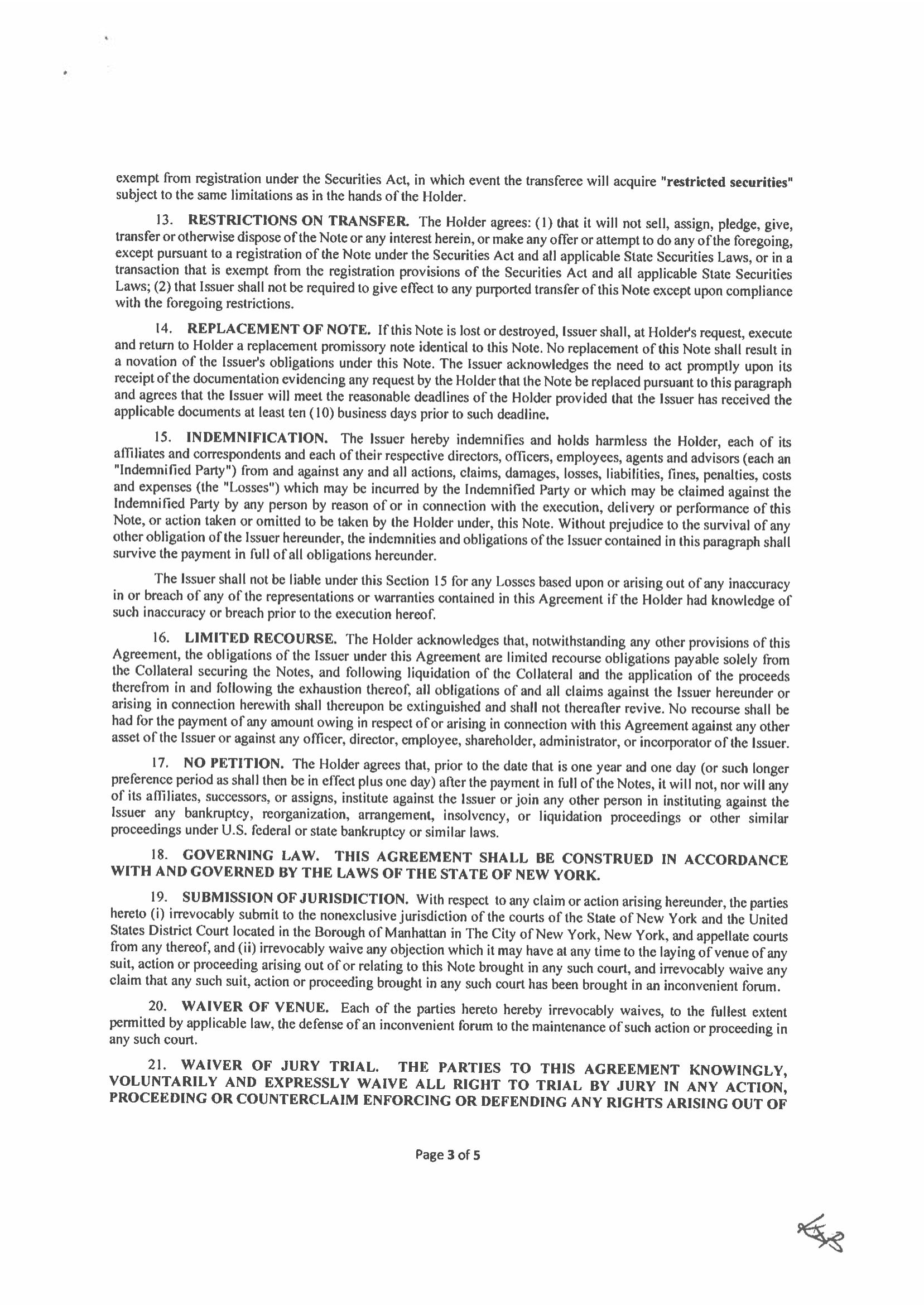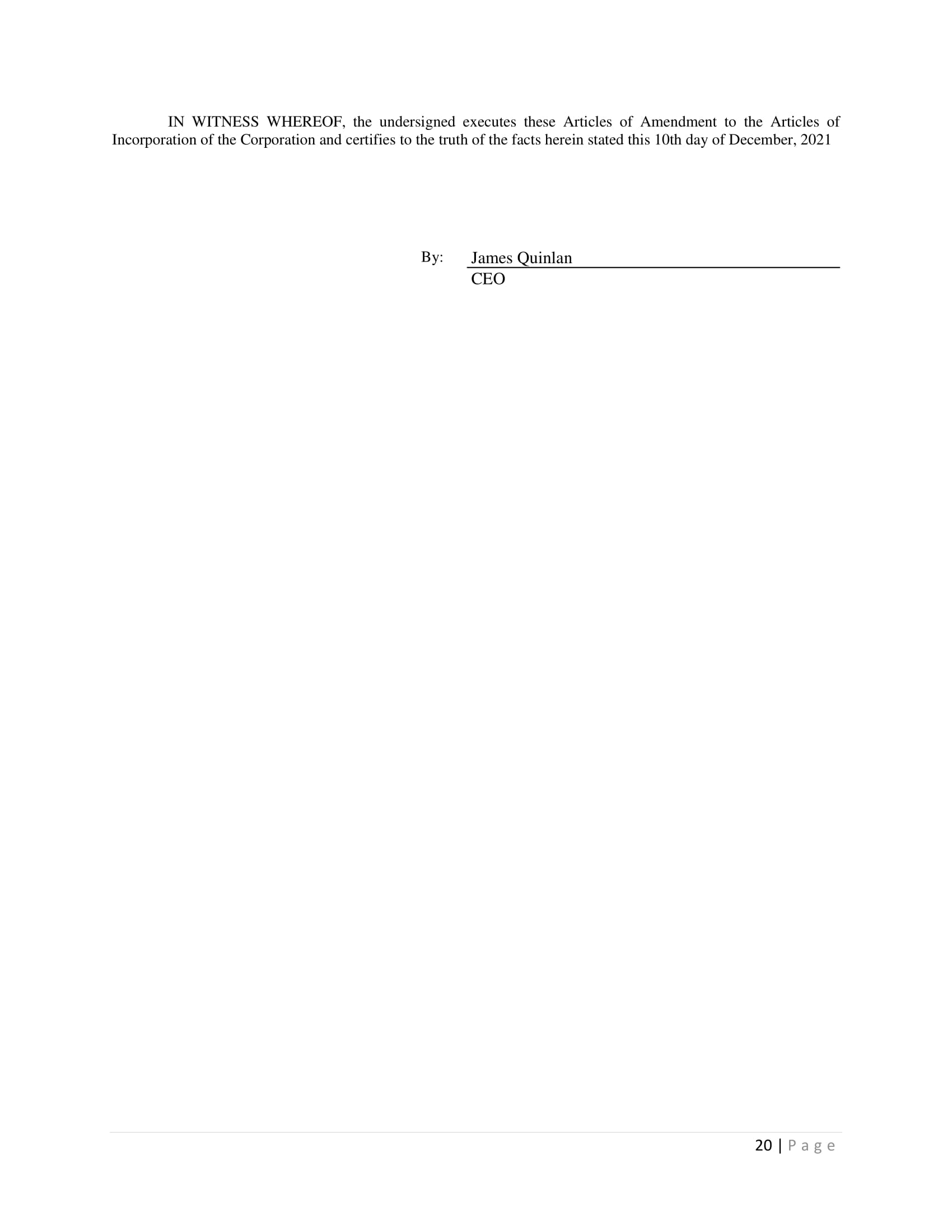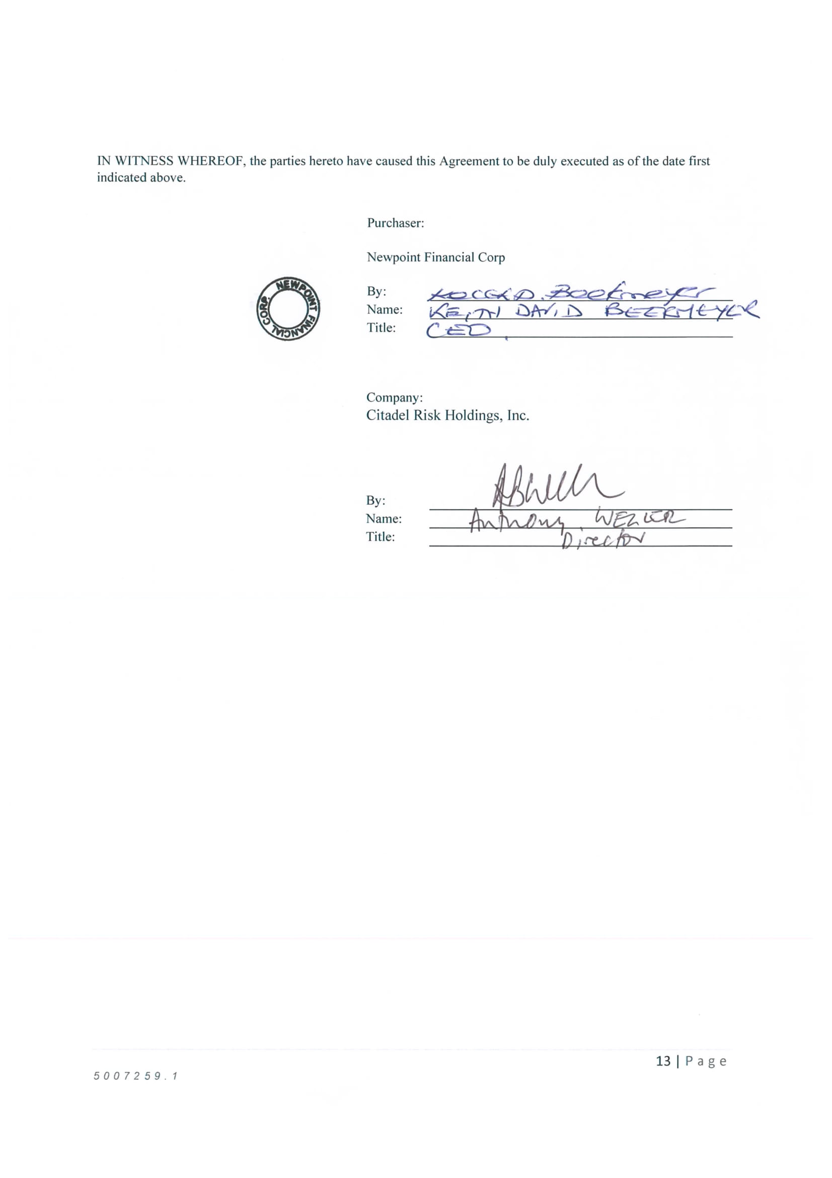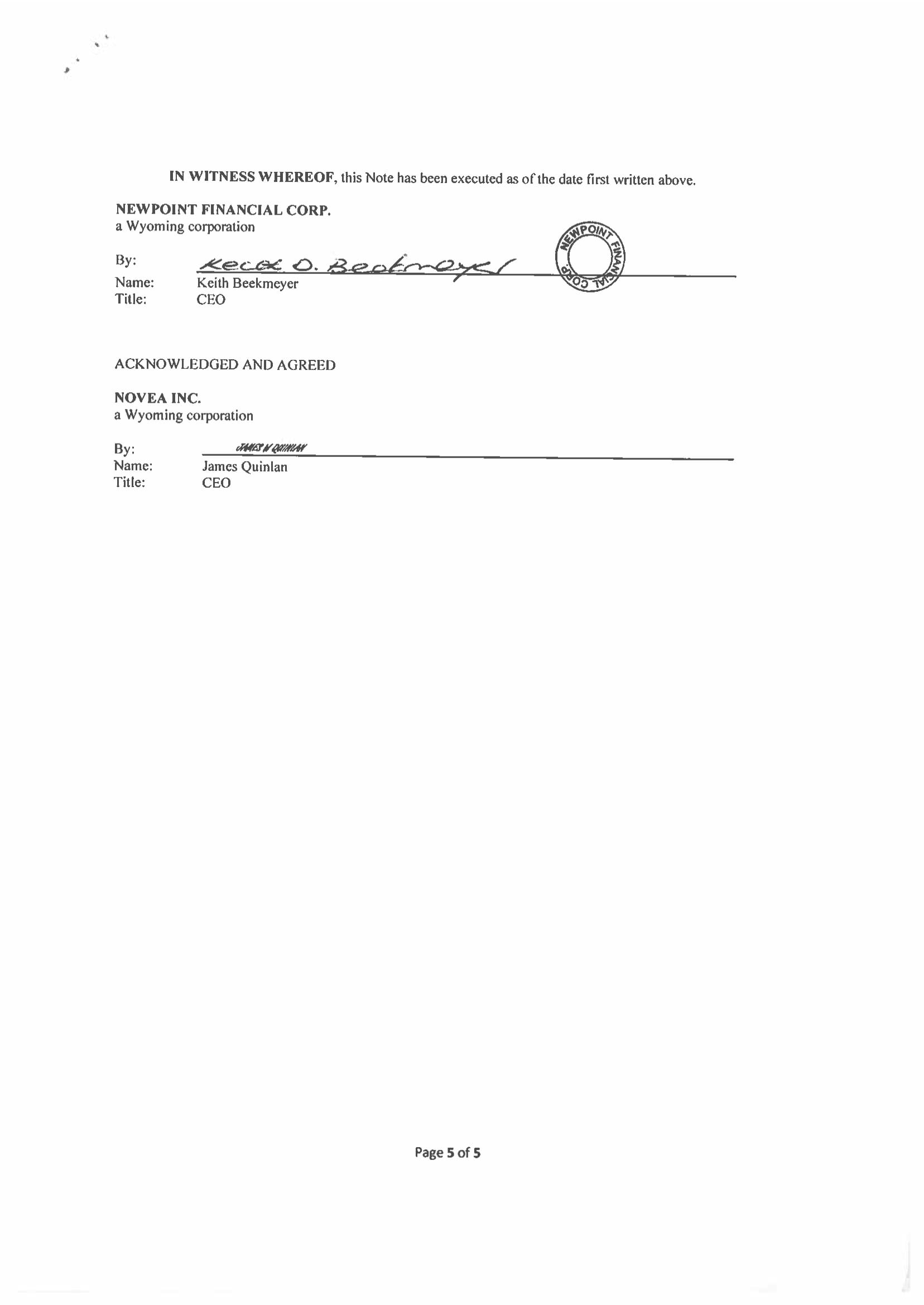 Mr. Shirshac was also the Chief Financial Officer of the WY Company. He was terminated from Newpoint Wyoming and the Company on December 31, 2021. He did not name the Company in the suit nor allege that the Company employed him.