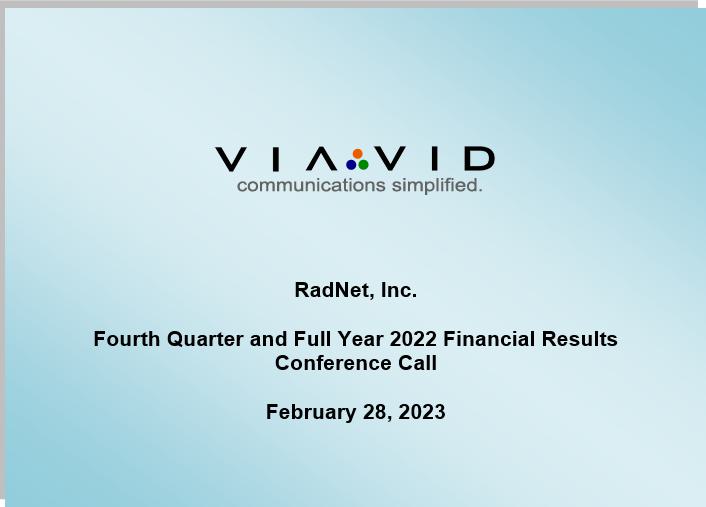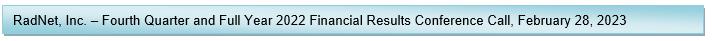LOS ANGELES, California, February 28, 2023 – RadNet, Inc. (NASDAQ: RDNT), a national leader in providing high-quality, cost-effective, fixed-site outpatient diagnostic imaging services through a network of 357 owned and/or operated outpatient imaging centers, today reported financial results for its fourth quarter and full year ended December 31, 2022.